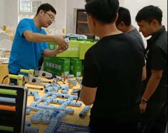 不過,大家并沒有忘記此次聯(lián)誼會一項(xiàng)“特殊”的節(jié)目,由專業(yè)的水工師傅為大家進(jìn)行熔接演示。只見師傅熟練地通過標(biāo)準(zhǔn)步驟將管道與管件牢固地熔接在一起,并讓圍觀的專業(yè)人士們親自體驗(yàn)與測試,零距離的體會到了亞通管道在質(zhì)量與品質(zhì)方面的獨(dú)到之處。