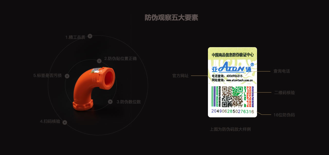 1、亞通官方微信公眾號(hào)查詢:請(qǐng)用手機(jī)微信搜索“亞通家裝管道”微信公眾號(hào),進(jìn)入防偽查詢,輸入16位防偽編碼即可驗(yàn)證真?zhèn)巍?br> 2、電話查詢:撥打4006986315,按語音提示輸入16位防偽編碼,系統(tǒng)將以語音方式回復(fù)產(chǎn)品驗(yàn)證信息。