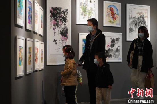 5月15日,甘肅蘭州,市民參觀少兒美術(shù)展覽。