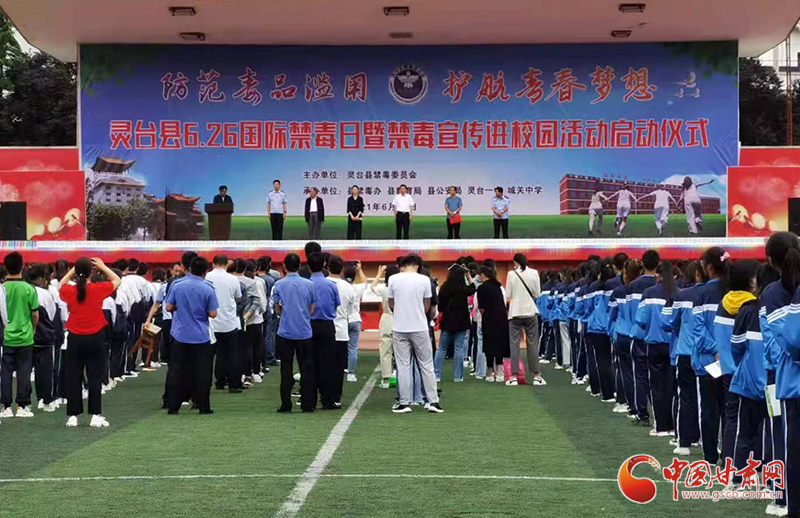 中國甘肅網(wǎng)6月25日訊(本網(wǎng)記者 李紅軍 通訊員 李青)為深入推進(jìn)毒品預(yù)防宣傳教育,全面普及禁毒知識,不斷增強(qiáng)人民群眾特別是廣大青少年學(xué)生的禁毒防毒意識,營造全民禁毒濃厚氛圍,6月25日,平?jīng)鍪徐`臺縣禁毒委在靈臺一中操場舉辦了全民禁毒宣傳月暨禁毒宣傳進(jìn)校園啟動(dòng)儀式。