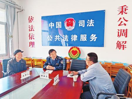 全國模范人民調(diào)解員、和政縣司法局三合司法所所長張仲勝傾心調(diào)解矛盾糾紛(4月20日拍攝)。 新甘肅·甘肅法制報記者陳孝志攝