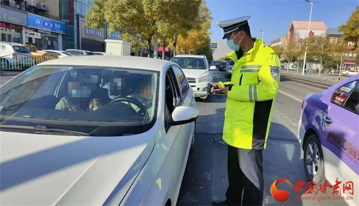 12月17日,金昌市公安局金川分局交警大隊民警檢查過往車輛,預防和減少道路交通事故的發(fā)生。