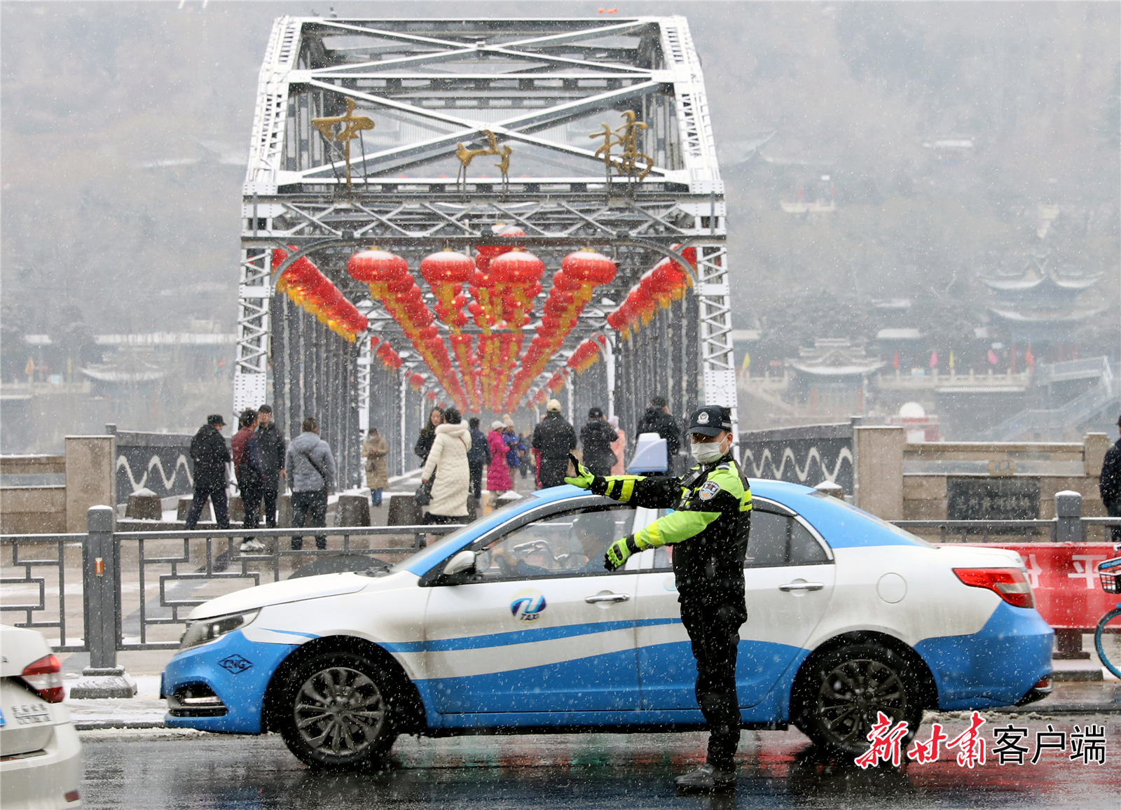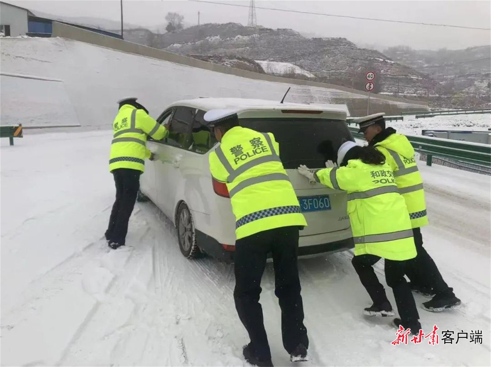 新甘肅客戶端訊(新甘肅·每日甘肅網(wǎng)記者 萬及敏)2月8日上午,甘肅多地出現(xiàn)降雪天氣,部分道路出現(xiàn)積雪結(jié)冰現(xiàn)象。為最大限度保障群眾出行安全,預(yù)防和減少道路交通事故的發(fā)生,全省公安機(jī)關(guān)1.2萬公安民輔警奮戰(zhàn)一線,加大重點路段巡邏管控力度,采取預(yù)警提示、除冰、引導(dǎo)車輛減速慢行、封閉道路、幫助群眾推車等措施,嚴(yán)防交通事故發(fā)生,為群眾的平安出行保駕護(hù)航。