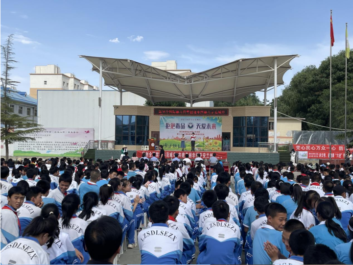 活動現(xiàn)場,通過擺放禁毒知識宣傳展架、仿真毒品模型、宣傳資料,懸掛橫幅,電子屏滾動播放宣傳語等方式烘托了一場濃厚禁毒宣傳氛圍;禁毒知識競賽搶答,禁毒知識謎語競猜,看圖識毒品、“趕走毒品”小游戲等形式多樣、內(nèi)容豐富、突出特色、注重實效的宣傳活動、形態(tài)逼真的毒品仿真模型,吸引青少年有了進一步深入了解毒品的形狀、種類、危害的好奇心,禁毒志愿者乘勢對“開心水”“奶茶”“大麻”“跳跳糖”“郵票”等善于偽裝,誘惑性和危害性極強的新型毒品進行重點講解,提醒大家要提高自我保護意識和能力,提防新型毒品的誘惑,遠離不良娛樂場所,不接受陌生人提供的食物和飲品,為同學(xué)們上了一堂別開生面的禁毒教育課。同學(xué)們將自己所學(xué)、所看、所想、所聽的禁毒知識積極參與討論互動,切實提高了大家對毒品特別是新型毒品的辨識能力。同時,活動現(xiàn)場還通過給同學(xué)們發(fā)放“致家長的一封信”的方式,發(fā)動在校學(xué)生“小小宣傳員”的作用,將禁毒知識說給身邊的朋友、自己的家長聽,從而傳播禁毒種子,匯聚全民禁毒力量,共同推進全國禁毒示范城市創(chuàng)建工作向深發(fā)展。