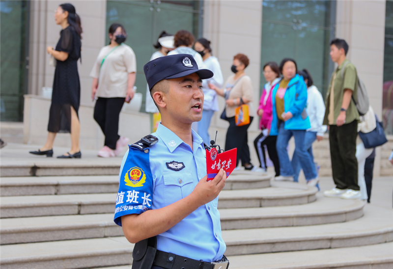 “我們?cè)诓┪镳^內(nèi)部開(kāi)展游客分流、提醒引導(dǎo)、巡邏防控、排查安全隱患等工作,全力為游客打造隱患少、服務(wù)好的平安游覽環(huán)境。同時(shí),我們的交警同事也在周邊道路積極開(kāi)展道路交通疏導(dǎo),根據(jù)車流量情況在不同路段進(jìn)行分流,保障游客車輛安全有序通行。”西站派出所副所長(zhǎng)魏相昆說(shuō),“甘肅省博物館周邊停車緊張,提醒游客盡量乘坐公共交通工具,如遇突發(fā)情況請(qǐng)及時(shí)和我們執(zhí)勤民警聯(lián)系,我們會(huì)全力提供幫助。”