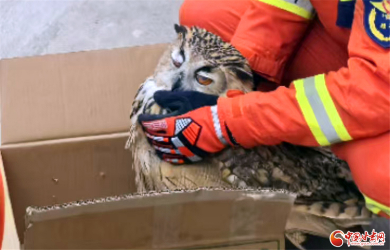 經(jīng)工作人員辨認(rèn),該鳥類為雕鸮,屬國家二級保護(hù)動物,經(jīng)檢查該雕鸮無外傷,符合放生條件,遂將其帶到安全區(qū)域后放回了大自然。