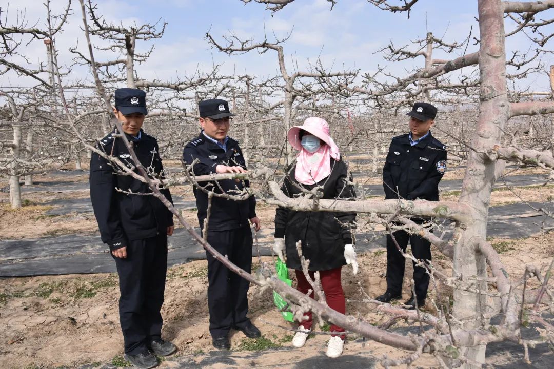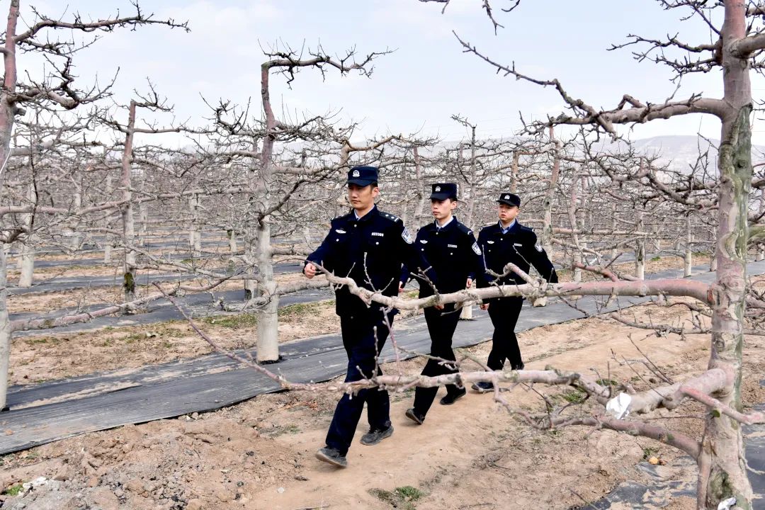 在這片希望的田野上,一抹抹藏藍色的身影穿梭于果園中,格外引人注目。“老武,今年果樹長勢不錯?。〔贿^最近天氣干燥,可得注意防火,別在地頭抽煙了!”民警張?zhí)锝芤贿呇策?,一邊笑著提醒正在修剪果樹的果農(nóng)武大叔。“放心吧,張警官,你們天天來巡邏,我們心里踏實多了!”武大叔擦了擦額頭的汗,連連點頭道。