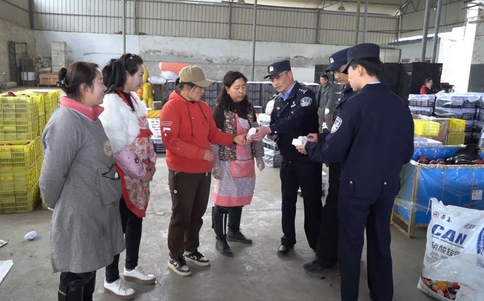 除了巡邏防控和矛盾調解,花牛派出所還開設了“田間課堂”,向果農(nóng)積極開展普法宣傳。在農(nóng)資市場休息區(qū),民警們拉起橫幅,向果農(nóng)們講解防盜、防騙、防火等安全知識。民警馬嘯不時翻看手機里的微信群說:“我們主動將果農(nóng)納入微信群,不定時推送防騙知識,果農(nóng)們遇到拿不準的情況也會及時向我們咨詢。”