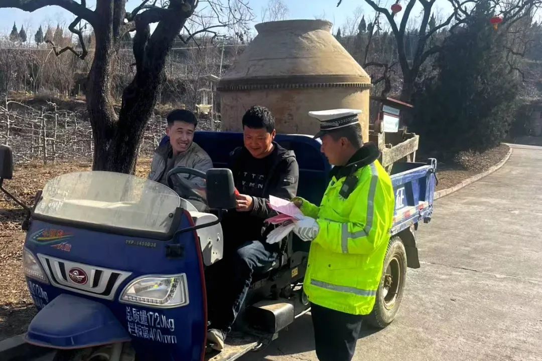 針對春耕期間農(nóng)用車違法載人、超載運輸、人貨混裝等安全隱患,花牛派出所聯(lián)合交警中隊組建“春耕宣傳小分隊”,深入春耕生產(chǎn)一線,通過發(fā)放交通安全宣傳單等方式,結合典型案例,用“拉家常”的語言向群眾送去“交通安全”的種子,全力守護果農(nóng)們的春耕生產(chǎn)路。