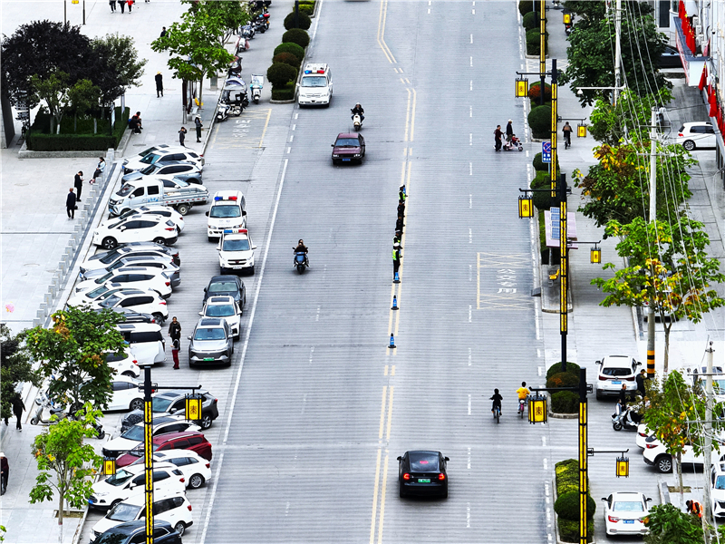 在熙攘的鹽井古街,巡邏民警的身影融入如織的游人;踏入寧靜的秦皇湖景區(qū),執(zhí)勤民警的腳步輕撫過每一條林間小徑;穿梭在節(jié)日的秦人廣場,閃爍的警燈與萬家燈火交相輝映——這升騰流動的“煙火人間”背后,總有一抹“藏藍”在默默守護。