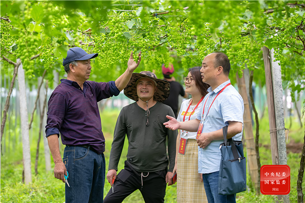 杭州市淳安縣紀(jì)檢監(jiān)察干部在富文鄉(xiāng)走訪葡萄種植戶,了解農(nóng)業(yè)產(chǎn)業(yè)扶持政策兌現(xiàn)情況,幫助解決困難,通過精準(zhǔn)有效監(jiān)督保障各項(xiàng)惠農(nóng)政策落實(shí)。(杭州市淳安縣紀(jì)委監(jiān)委 毛勇鋒 攝)
