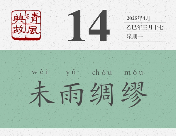 《詩經(jīng)·豳風·鴟鸮(chī xiāo)》共四章,每章五句,前兩章曰:“鴟鸮鴟鸮,既取我子,無毀我室。恩斯勤斯,鬻子之閔斯。迨天之未陰雨,徹彼桑土,綢繆牖戶。今女下民,或敢侮予?”鴟鸮,貓頭鷹,指代壞鳥。恩,通“殷”,殷勤。鬻,通“育”,養(yǎng)育。閔,病也。徹,通“撤”,撤去。桑土,即桑杜,桑根。綢繆,緊密纏縛,引申為修繕。這兩章的大意是,貓頭鷹啊貓頭鷹,你這惡鳥已經(jīng)奪走了我的孩子,不要再毀掉我的窩巢。我含辛茹苦,為養(yǎng)育孩子已經(jīng)病倒了!我趁著天沒有陰雨,撤去那桑根,將窗扇門戶縛緊修好。現(xiàn)在你們樹下的這些人,還有誰敢欺凌我?