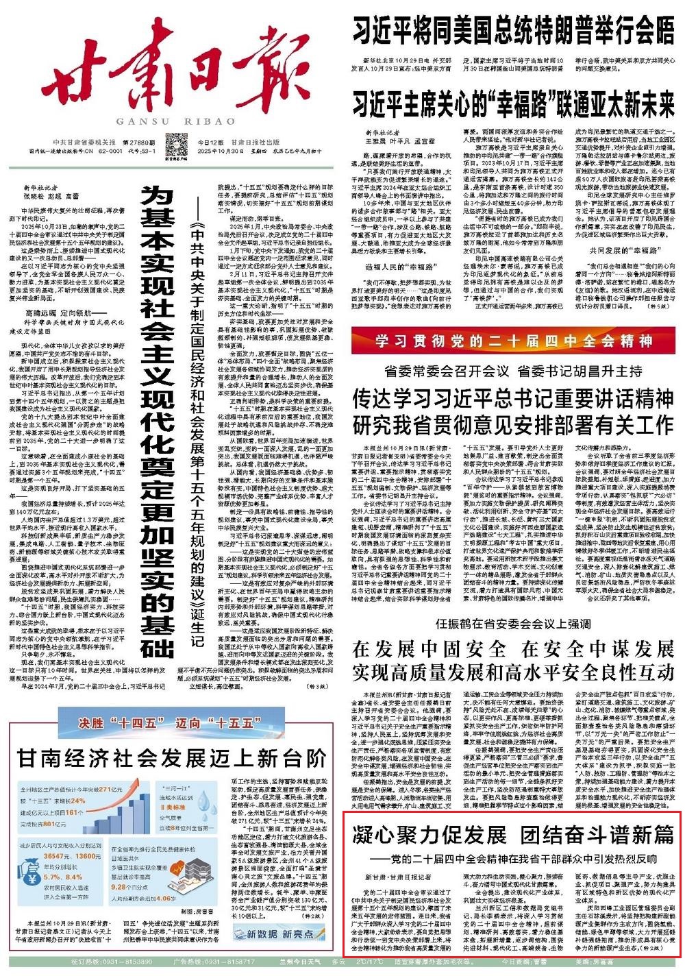 黨的二十屆四中全會審議通過了《中共中央關(guān)于制定國民經(jīng)濟和社會發(fā)展第十五個五年規(guī)劃的建議》,擘畫了未來五年發(fā)展的宏偉藍圖。連日來,我省廣大干部群眾深入學(xué)習(xí)黨的二十屆四中全會精神,大家紛紛表示,要自覺把思想和行動統(tǒng)一到黨中央決策部署上來,將全會精神轉(zhuǎn)化為推動我省高質(zhì)量發(fā)展的強大動力和生動實踐,凝心聚力,接續(xù)奮斗,奮力譜寫中國式現(xiàn)代化甘肅篇章。