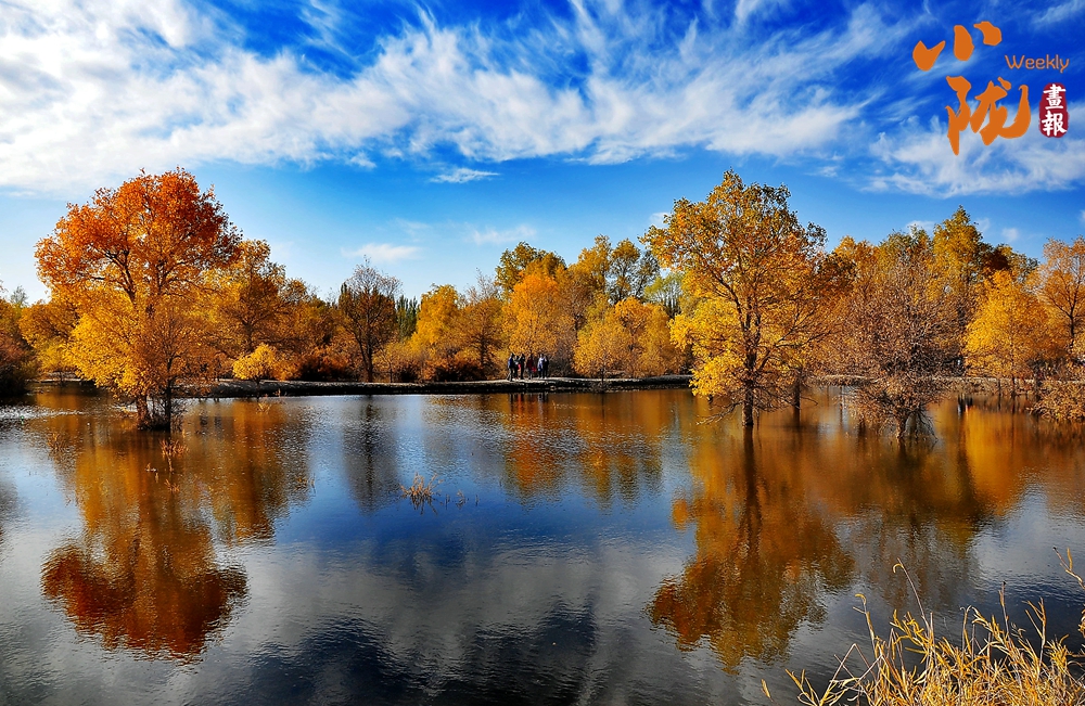 碧波蕩漾的金波湖倒映著胡楊,形成水中有林、林中有水的絕美畫面。游人如織,小橋流水,碧波蕩漾,白鵝嬉戲,若不是周邊金黃色的胡楊提醒,會讓人誤以為來到了江南水鄉(xiāng)。