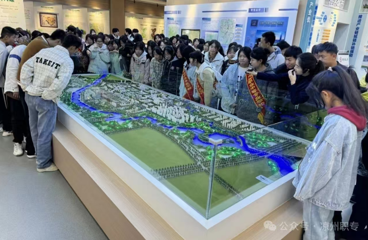 活動(dòng)伊始,同學(xué)們?cè)谝粚?ldquo;城市之光”規(guī)劃館沿“時(shí)光之路”“奮進(jìn)之路”“崛起之路”三大主線,借助圖文、城市模型、數(shù)字沙盤(pán)及多媒體影像,系統(tǒng)回顧武威自絲綢之路重鎮(zhèn)到智慧新城的千年演進(jìn),感受家鄉(xiāng)歷史厚度與發(fā)展活力。