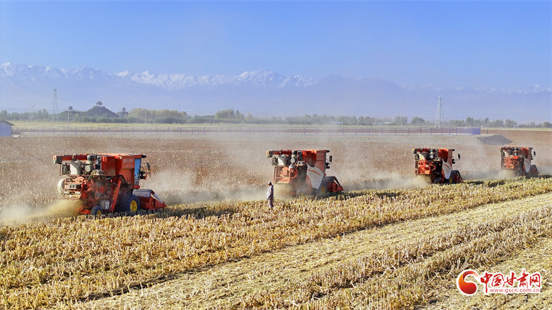 時下,在甘肅省張掖市民樂工業(yè)園區(qū)濱河集團萬畝原糧種植基地,農(nóng)機手駕駛收割機穿梭田間地頭收割高粱,一派繁忙豐收景象。