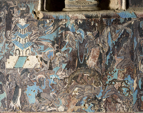 畫中,薩埵太子橫臥山崖的身姿,肌肉線條如青銅雕像般充滿力量感;母虎與幼虎的刻畫則通過夸張的動(dòng)態(tài),傳遞出生命的原始張力。(敦煌研究院供圖)