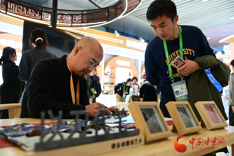 展廳里,除了靜態(tài)展示的鍥金畫,還有手工藝人現(xiàn)場演示刻刀的用法——觀眾能看著鋼刀在底板上游走,看線條一點點成型,感受每一刀背后的細致與耐心。旁邊的VR體驗區(qū),通過折幕投影帶觀眾“走進”莫高窟,也讓大家更懂張兆武筆下敦煌元素的由來;“美食薈”里的蘭州牛肉面、“文藝薈”里的特色工藝,則從旁襯托著這門非遺手藝的文化底色。