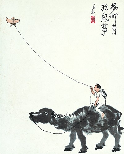 此后,隨著學(xué)識的增加,關(guān)于牛的意象不斷拓展。“天蒼蒼,野茫茫。風吹草低見牛羊”,這是南北朝時期的《敕勒歌》,廣袤的草原為牛提供了開闊的活動空間與豐贍的食物,多么安詳自在的景象呀!“隔岸橫州十里青,黃牛無數(shù)放春晴。船行非與牛相背,何事黃牛卻倒行。”這是楊萬里的詩作《過大皋渡》,黃牛不會倒行,而是船行河中水流太急,生活的趣味里悄然透著淡淡的哲理。“門外一溪清見底,老翁牽牛飲溪水。溪清喜不污牛腹,豈畏踐霜寒墮趾。”這是陸游詩作《飲牛歌》,用老翁飲牛的潔凈溪水,比襯自我的廉潔之志。往后看更見意趣,“牛能生犢我有孫,世世相從老故園”,借助牛繁衍生犢,渲染門庭興旺,而且世代情系故園,真是不忘初心呀!“草滿池塘水滿陂,山銜落日浸寒漪。牧童歸去橫牛背,短笛無腔信口吹。”這是宋代雷震的詩作《村晚》,鄉(xiāng)村的黃昏恬靜怡和,靜在草叢,靜在池塘,靜在倒映于水面的“山銜落日”,這未免有點沉寂吧?打破沉寂的是牛,是趨步前行的牛,還有牛背上飛出的短笛聲,這聲音毫無約束,信口吹響,自由飛揚。