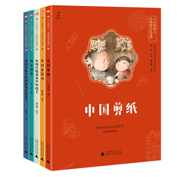 奶奶炕頭的窗花,皮影勾勒的世界,吳儂軟語(yǔ)縈繞的絲綢,故宮雄偉的大殿,穿越千年的鼓韻……“小小傳承人:非物質(zhì)文化遺產(chǎn)”系列傳統(tǒng)文化讀本日前推出第一輯,包括《中國(guó)剪紙》《中國(guó)皮影戲》《中國(guó)傳統(tǒng)桑蠶絲織技藝》《西安鼓樂》《中國(guó)傳統(tǒng)木結(jié)構(gòu)建筑營(yíng)造技藝》五本。