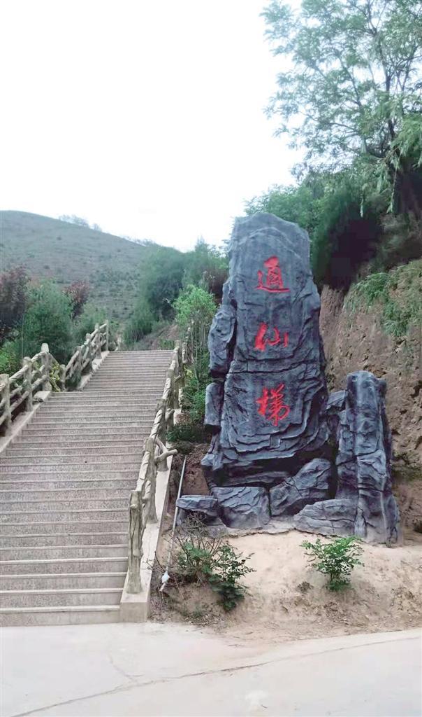 一條羊腸小道蜿蜒了千年,承載了無(wú)數(shù)游覽者匆匆的步履,在人們無(wú)數(shù)次的暢想中,化成了一條金光大道,讓老人、孩童和物資可直達(dá)寺窟門外。醒目的“通仙梯”石刻指引人們沿著游步道拾級(jí)而上,領(lǐng)略綠樹(shù)掩映、曲徑通幽的絕好勝景,金黃的葉子在濃密的綠葉間格外鮮亮,松樹(shù)和柏樹(shù)你擠著我,我挨著你,密密匝匝,在五月的陽(yáng)光和微風(fēng)中,吟唱著生命的贊歌。白色槐花香氣馥郁,紅色槐花鮮艷奪目,它們從高高的枝頭垂下來(lái),或從山崖斜伸而出,或與游人摩肩而過(guò),或者親呢的撫摸一下游人的笑臉。掩映綠樹(shù)中的亭子,是一道絕好的景觀,讓人產(chǎn)生一種遐想和逗留的念想。亭子旁叫不出名的小鳥(niǎo)輕盈的飛舞和歡快的鳴叫,增添了一種活潑美妙的情趣。這情趣給花樹(shù)、亭子帶來(lái)一種靈性,頻添了無(wú)限韻味和妙趣。