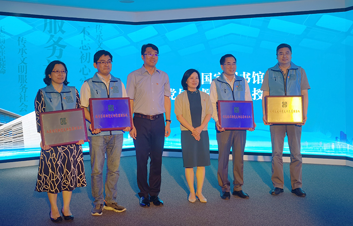 6月8日上午,國家圖書館新閱讀空間開放暨黨員志愿服務(wù)總隊成立活動在國家圖書館總館北區(qū)舉行?;顒蝇F(xiàn)場,國家圖書館黨委書記、副館長魏大威,國家圖書館副館長、黨委副書記陳櫻為4支黨員志愿服務(wù)分隊代表授牌。