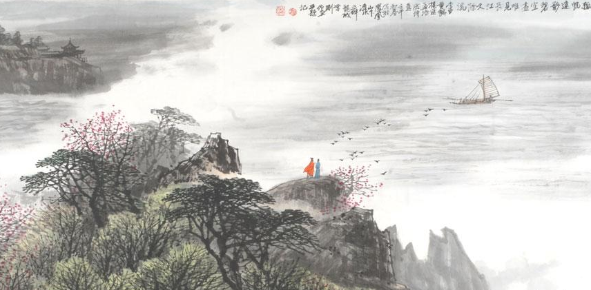 自古楚國多才子。楚人孟浩然,詩才橫溢。八月湖水平,一個(gè)“平”字,惟妙惟肖地描述出了洞庭湖煙波浩渺水天一體壯麗景色。