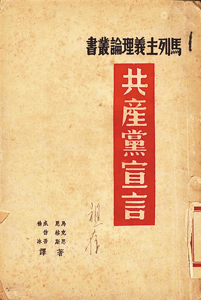 陜北公學(xué)首任校長(zhǎng)成仿吾曾在法國(guó)和德國(guó)學(xué)習(xí)馬克思主義理論,并受中共駐共產(chǎn)國(guó)際代表蔡和森委托,翻譯《共產(chǎn)黨宣言》。盡管這部譯稿遺失,卻奠定了他五譯《共產(chǎn)黨宣言》的基礎(chǔ)。人大圖書館收藏了其中3個(gè)刊發(fā)本,包括初印版。其中的二譯本,是受中共中央宣傳部委托,在解放區(qū)公開組織翻譯的第一個(gè)漢語(yǔ)全譯本??箲?zhàn)期間,該譯本是黨員干部的必讀書籍,也是陜北公學(xué)馬列課程的必備教材。