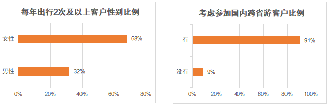 男女比例三七開,九成以上客戶期待國(guó)內(nèi)跨省游