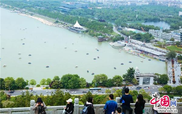 在大洞山、督公湖景區(qū),小丑嘉年華、氣球玩偶秀、魔法實(shí)驗(yàn)室等成為假日溜娃的好去處,大小朋友在碧水藍(lán)天下與白鴿零距離互動(dòng),呈現(xiàn)了人與自然的和諧相處,非物質(zhì)文化遺產(chǎn)項(xiàng)目表演“一葦渡江”中的漢服小哥衣袂飄飄地立于竹竿上,成為督公湖上一道靚麗的風(fēng)景線(xiàn)。