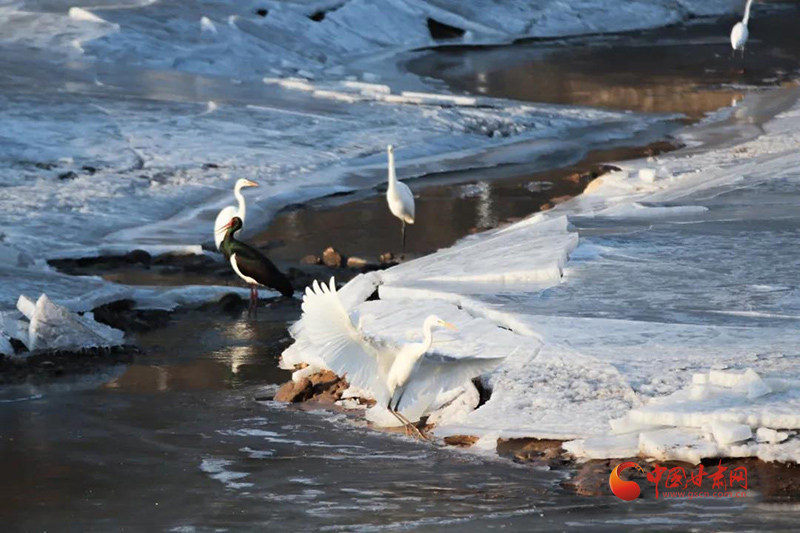 汭河水清山川美,鴛鴦白鷺入眼來,這是崇信縣汭河水域如今的自然寫照,自從河道變寬變干凈了,以前很少見的麻鴨、赤鴉成群結隊地在汭河河灘繁衍生息,還有白鷺、鴛鴦、黑鸛、蒼鷺、翠鳥等珍稀鳥類也從遠方遷徙而來,安家汭河,伴著淙淙河水、晶瑩薄冰紛紛起舞,跳著水中芭蕾。