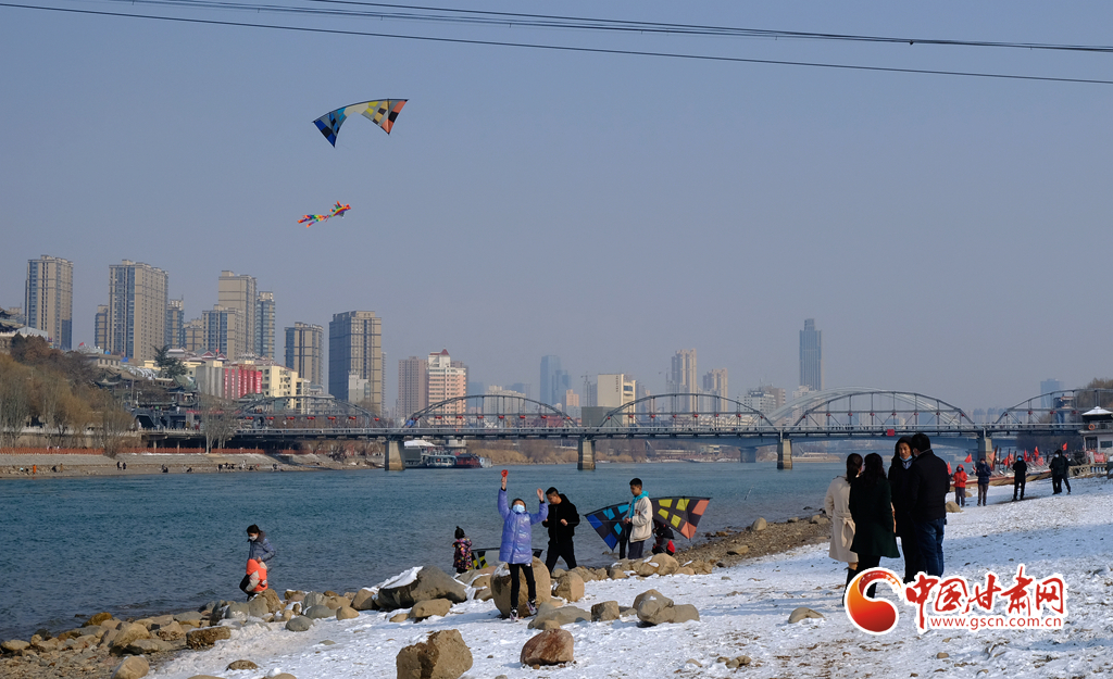 新春佳節(jié),早春時光,2月7日,雪后天晴,市民走出家門來到黃河之濱放風箏。