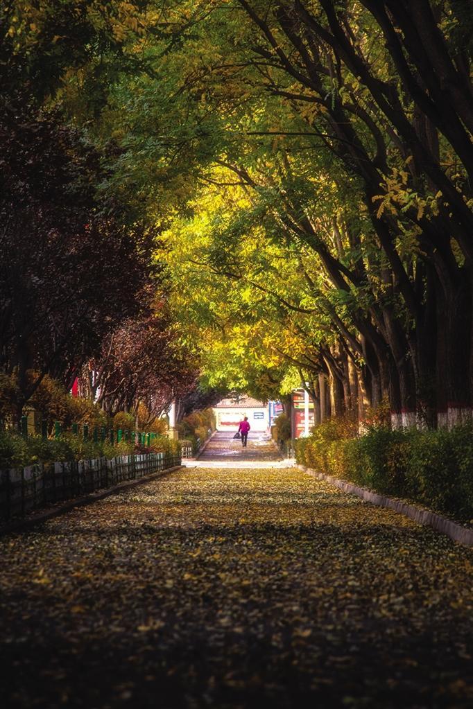 中國(guó)甘肅網(wǎng)11月4日訊 據(jù)蘭州晚報(bào)報(bào)道(通訊員 陳立穩(wěn) 記者 張鵬偉 攝)晚秋,藏著秋季里最美的景色。在這個(gè)如童話般的深秋季節(jié)里,皋蘭縣街道兩旁的國(guó)槐變成了金黃色,人民廣場(chǎng)的楓葉在霜的洗禮下漸漸轉(zhuǎn)黃,再由黃變紅。梧桐、銀杏的落葉交織,各種菊花競(jìng)相綻放,綠、黃、紅、紫交織在一起,組成了皋蘭最美的秋色。