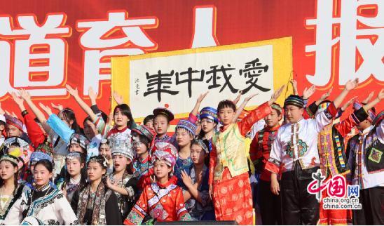 “歌唱我們親愛(ài)的祖國(guó),從今走向繁榮富強(qiáng)……”湖南省龍山縣第二中學(xué)八年級(jí)師生深情合唱。11月28日下午,該校第十八屆校園藝體節(jié)文藝匯演精彩上演,七千師生歡聚操場(chǎng)。