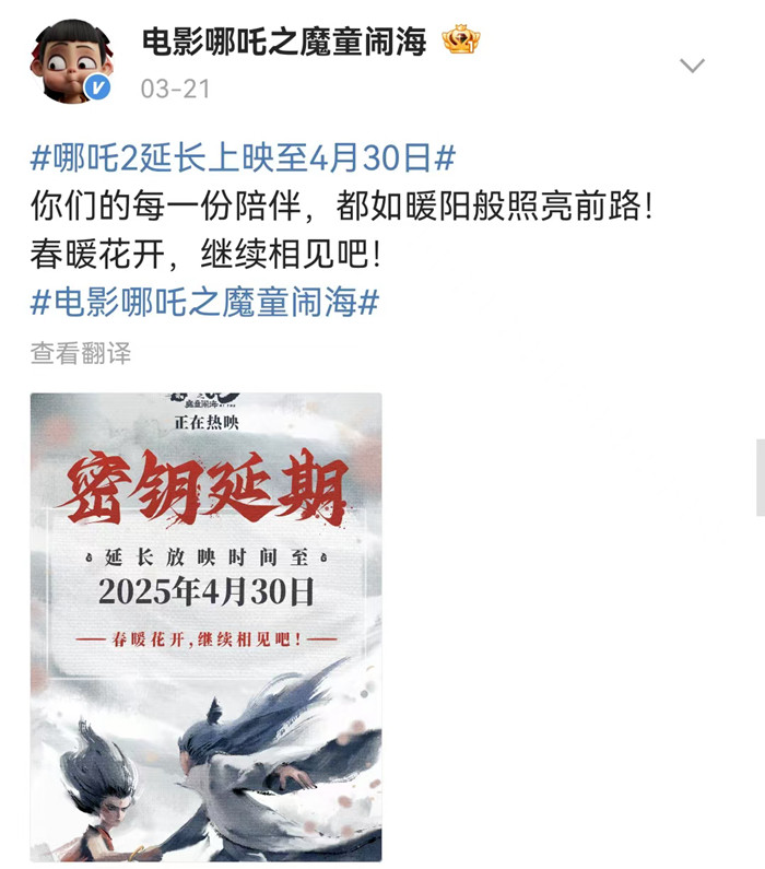 延長上映的《哪吒之魔童鬧?!放c即將重映的《熱烈》,成為這個清明檔不可小覷的隊伍。上映近兩個月來,《哪吒之魔童鬧海》依然牢牢坐穩(wěn)票房日冠,不斷刷新影史記錄,為了更好的觀看體驗,許多觀眾“為一塊屏奔赴一座城”,在清明節(jié)假期,這樣的影旅聯(lián)動依然有可能繼續(xù)。