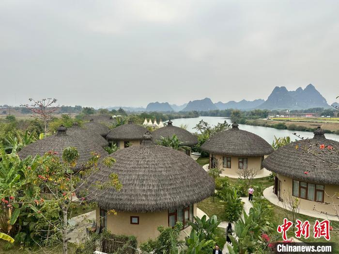 3月17日,游客打卡位于廣西崇左的在野宿集民宿群。 俞靖 攝