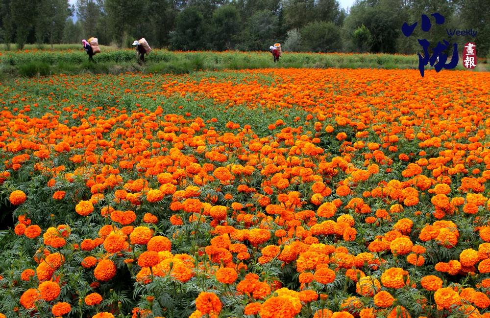 金黃的萬壽菊低垂著頭,仿佛是在向大地母親致謝,感謝她給予的滋養(yǎng)與庇護(hù)。農(nóng)人們穿梭其間,臉上洋溢著滿足與幸福的笑容,他們的汗水在這一刻得到了豐厚的回報。