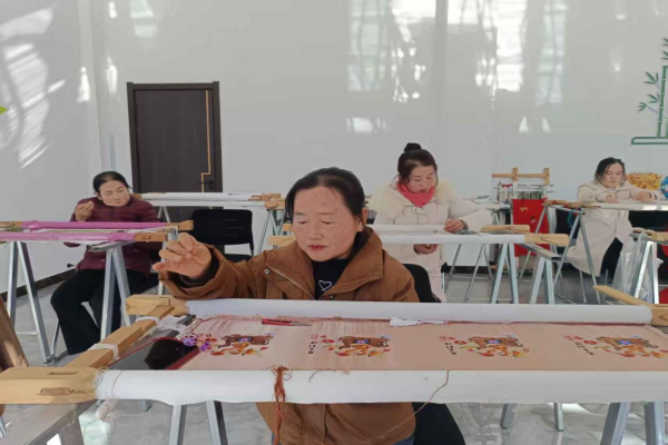 從硬片繡到架上刺繡,從鞋墊、枕頭到布藝首飾,十幾年間,刺繡讓袁紅艷為家庭帶去收入,更重塑了她自身。“這里有很多繡娘,大家互相鼓勵,我變得愛說愛笑了。”她給已經(jīng)工作的孩子繡實用品,參加比賽獲獎,獲得個人成就。“現(xiàn)在能幫襯家庭,感覺活得更有尊嚴了。”她建議無法外出務(wù)工的群體學(xué)習(xí)刺繡:“利用閑暇時間,既能增收,又能找到價值。”一根針,讓她從邊緣走向舞臺中央,一根線,讓她從“自卑”走向“自豪”。